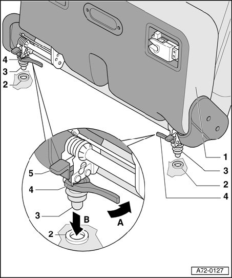 - Take children's bench - 1 - out of mounts - 2 -, - arrow B -.