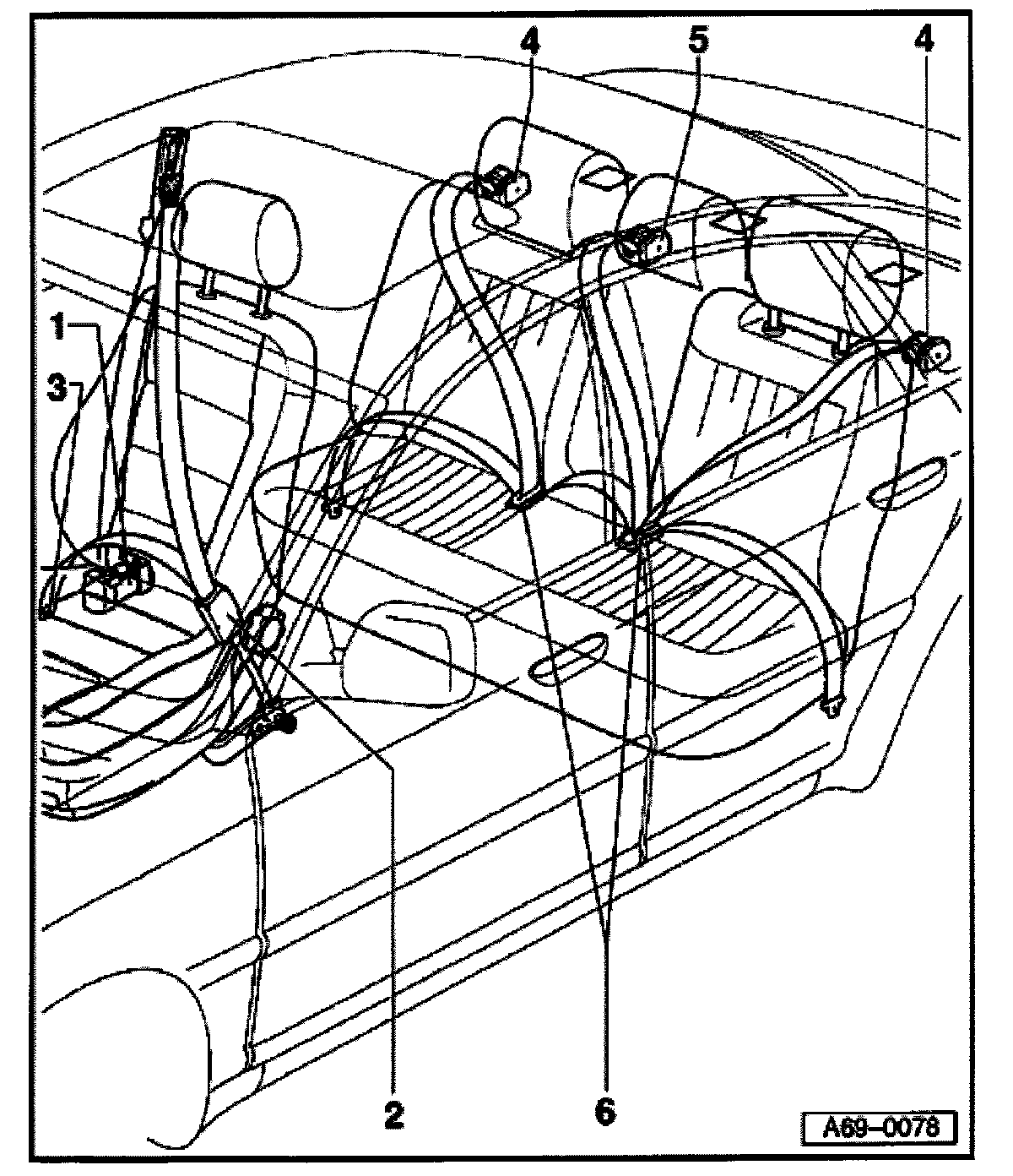 1 - 3-point seat belt with belt height adjuster and belt tensioner