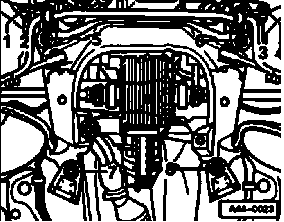 ^ Tighten new hex bolts -1-, -2-, -3-, and -4- to 60 Nm.