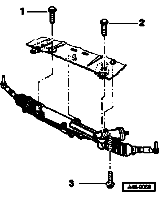 ^ Unbolt mounting points -1-, -2-, and -3- from steering gear.