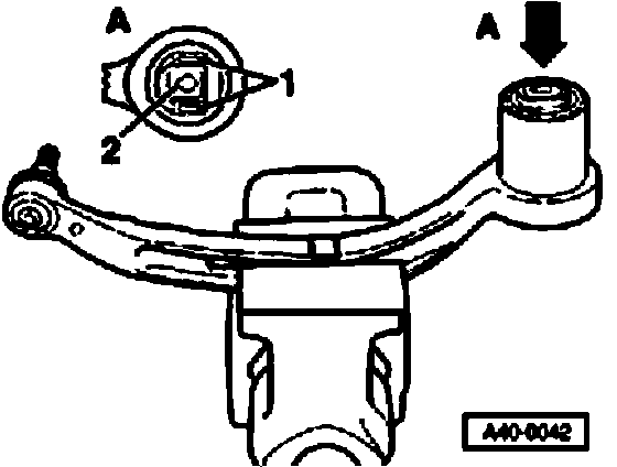 The (arrow) -1- on hydro-bushing/groove -2- on the anti-vibration mount point in the direction of joint bolt.