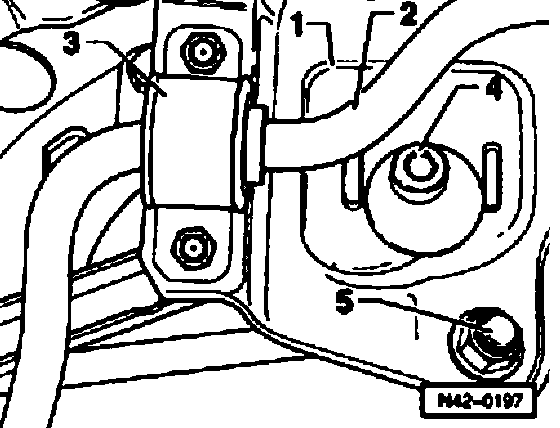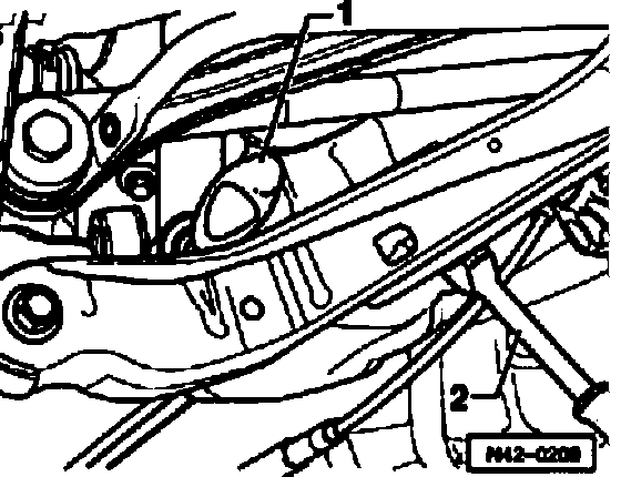 ^ Unscrew bolt-3- for shock absorber at lower control arm.