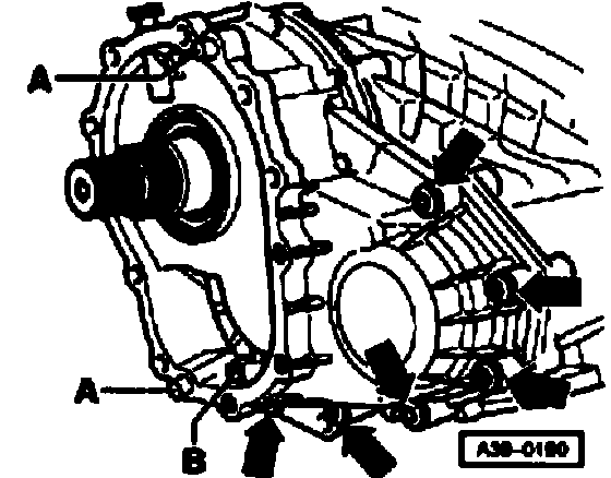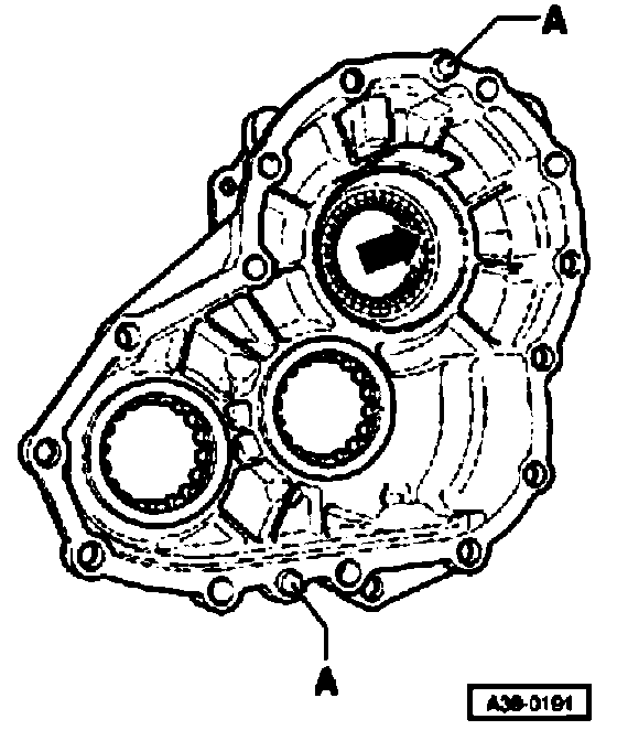 ^ If the spur gears for front final drive were removed, the wheel marking must face outward (away from transmission) for reinstallation.