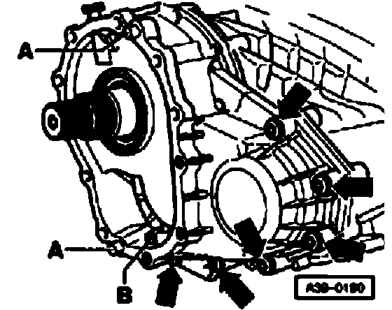 ^ Remove bolts (arrows) at intermediate flange for front final drive.