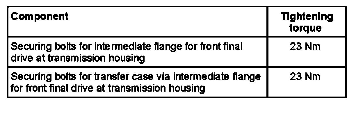 Securing bolts for transfer case via intermediate flange for front final drive at transmission housing 23 Nm