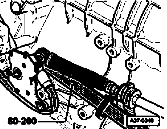 ^ Drive out tensioning pin -1- at transmission selector lever -2- in driving direction (arrow) until the transmission shift lever can be pulled off the shift rod.