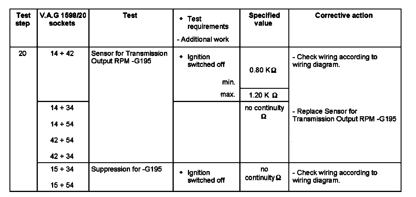 Electrical Test Tables