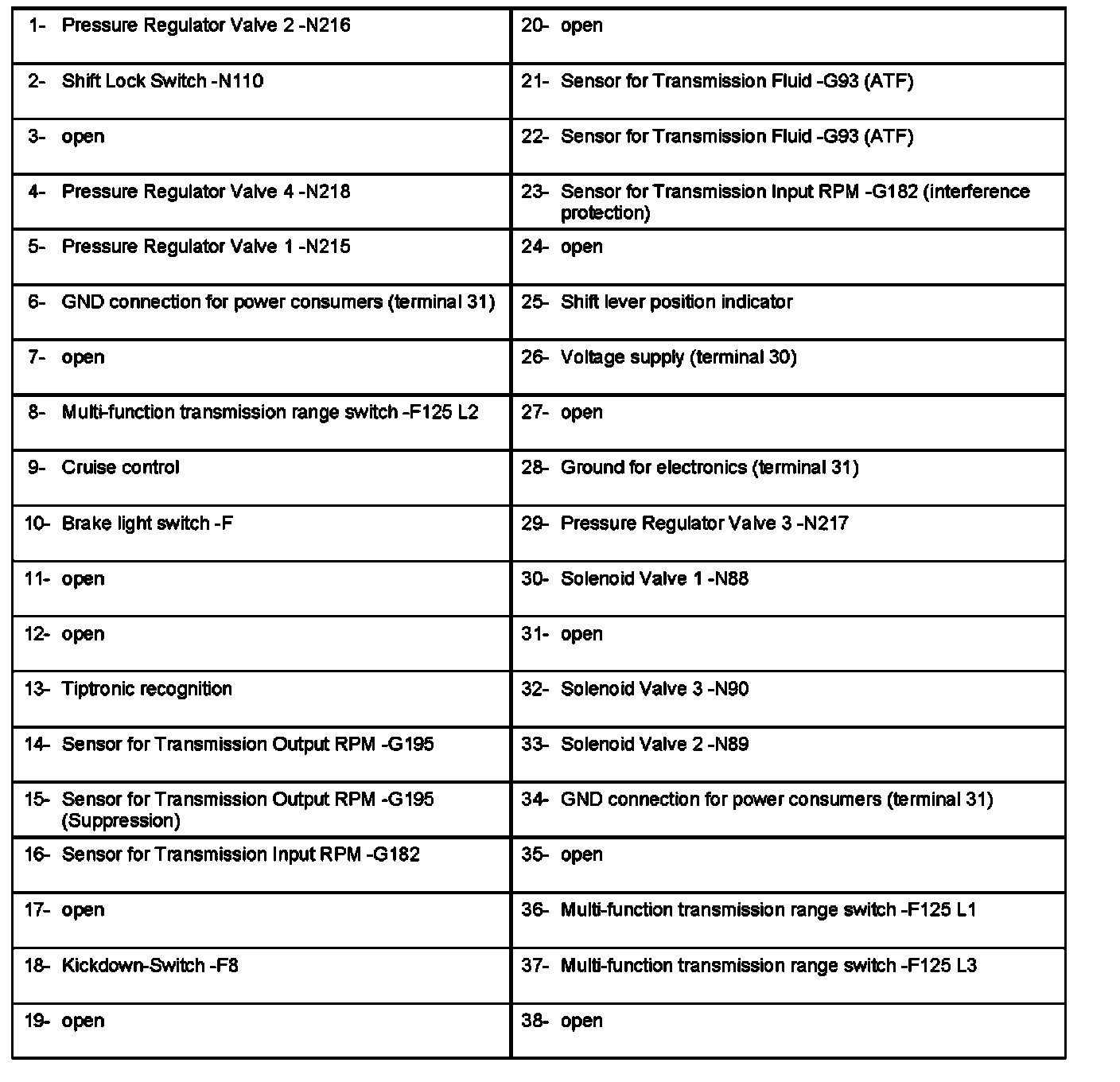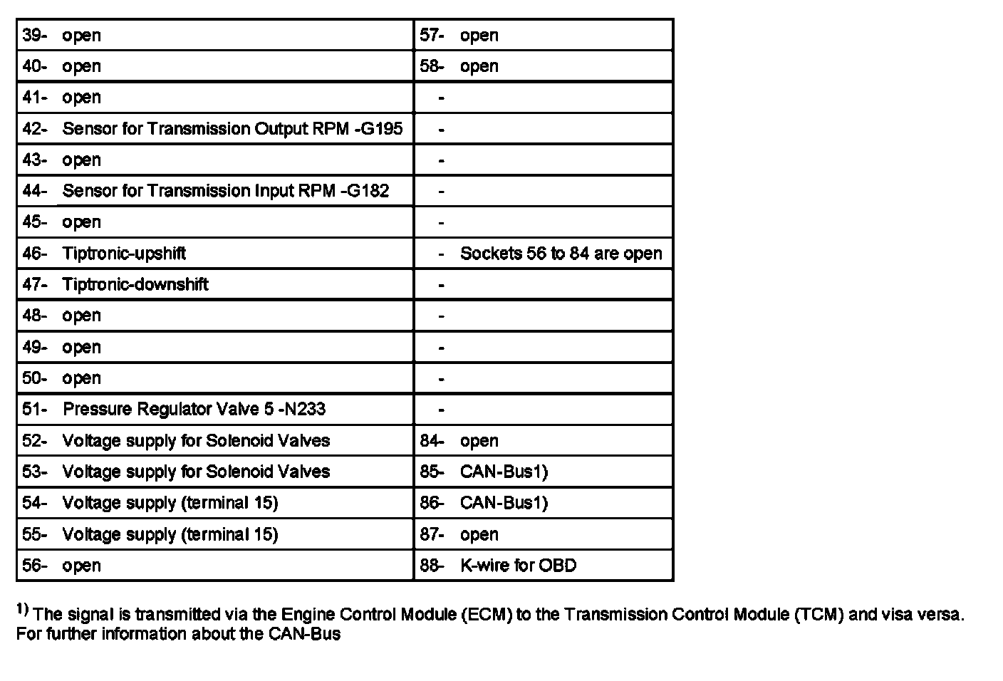 Multi-Pin Connector (88-Pin Connector) of Transmission Control Module -J217 (Sockets of V.A.G. 1598120)