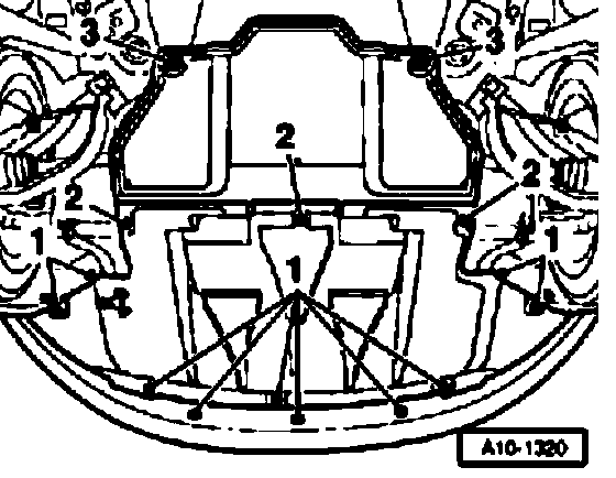 ^ Loosen cover for vehicle floor and heat shield above exhaust system in rear area of transmission. Push heat shield a little to one side.