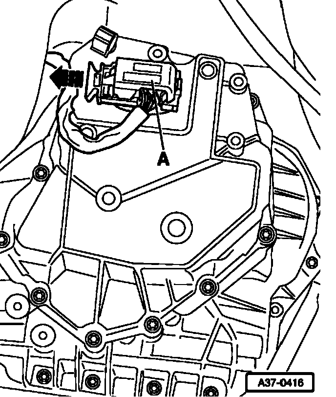 ^ Unlock connector -A- in direction of arrow and disconnect it from transmission.