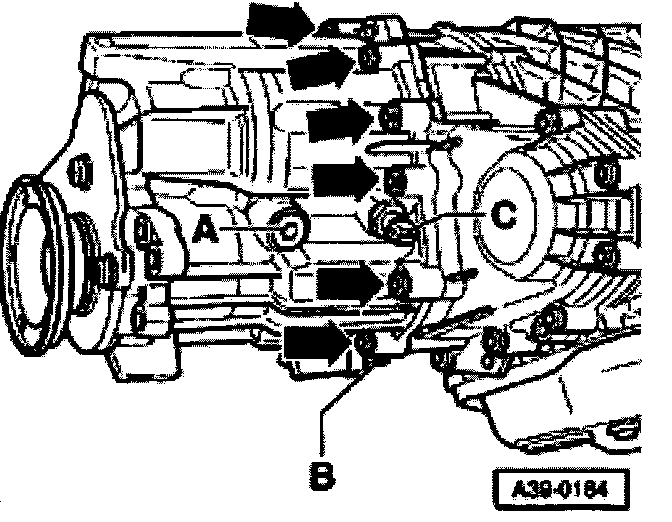 - Remove sender for transmission output RPM -G195 -C- at side of intermediate drive.