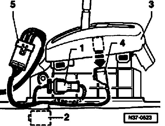 ^ Remove connector -4- for transmission range position and Tiptronic in direction of arrow.