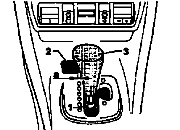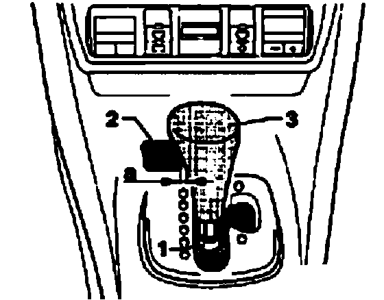 ^ Push in knob -2- in handle of selector lever -3-.