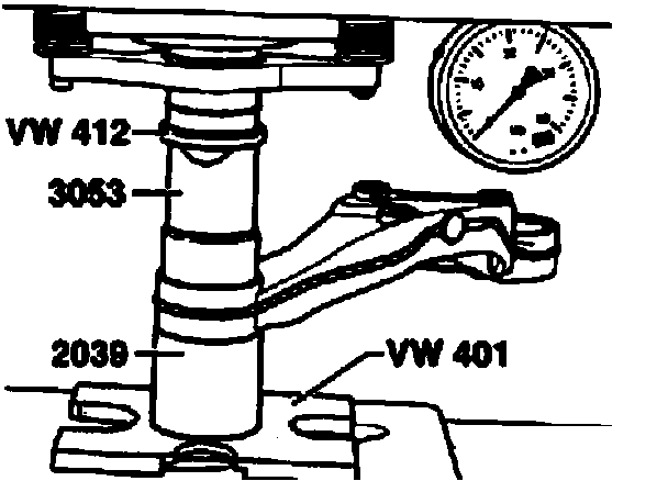 Fig. 2 Pressing bonded rubber bushing out of crossmember
