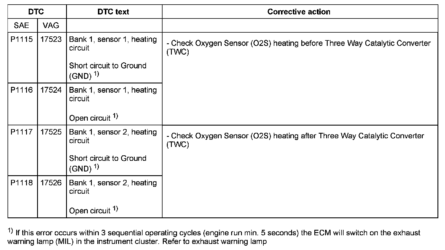 DTC P1115 - P1118: