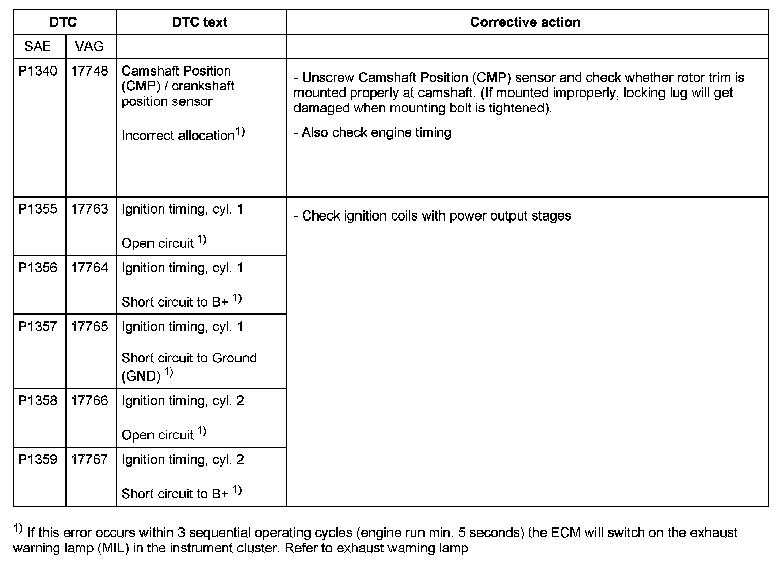 DTC P1340 - P1359: