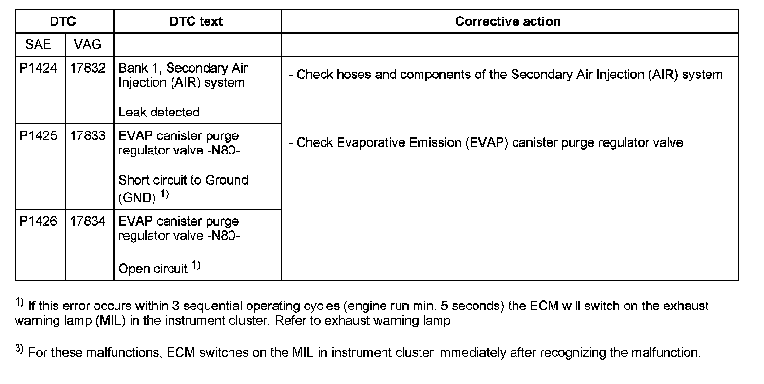 DTC 1424 - P1426: