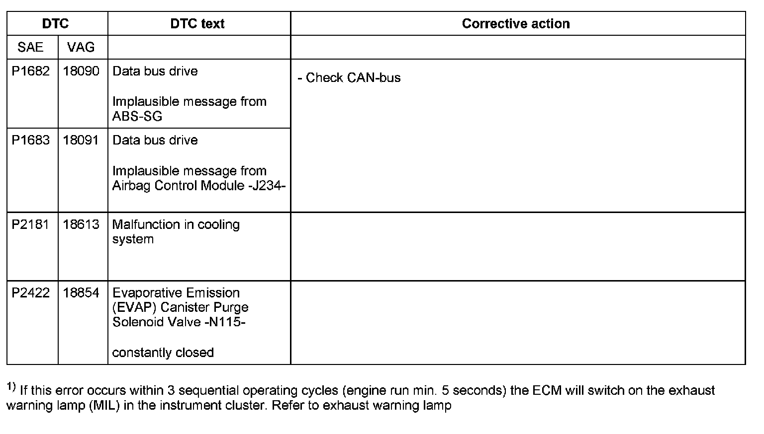 DTC P1682 - P2422: