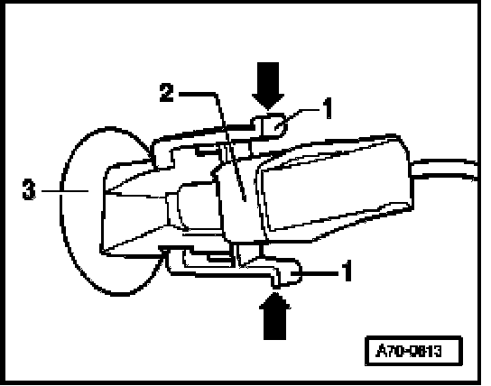 - Press -1- retaining tab together, in direction of arrow and pull out diode -2-.