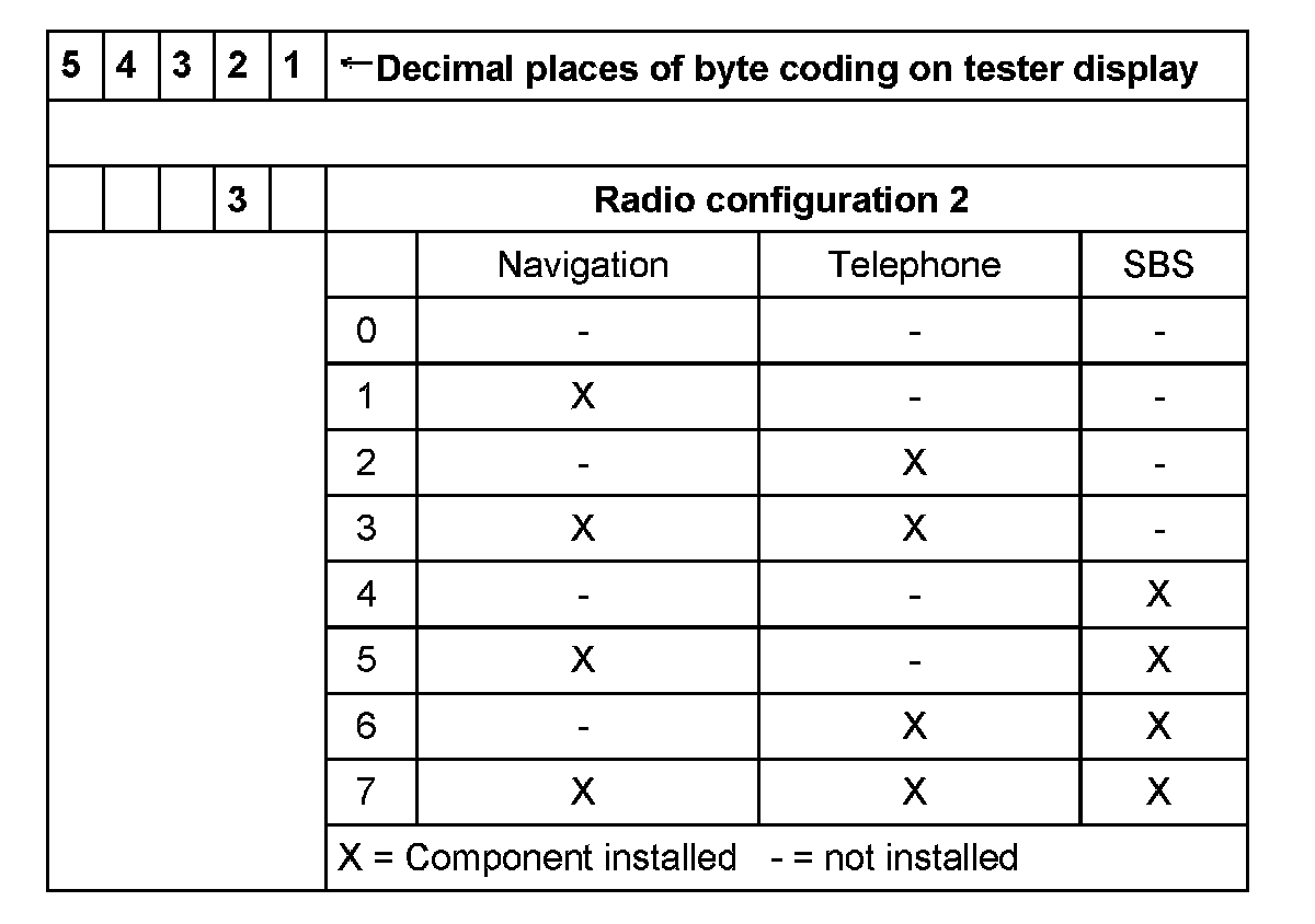 - Radio configuration 2: 3 = with navigation and Telephone