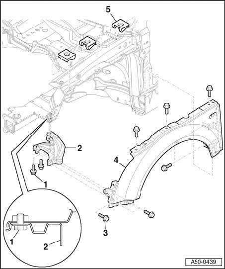 - Unscrew combi bolts - 3 - and detach fender.