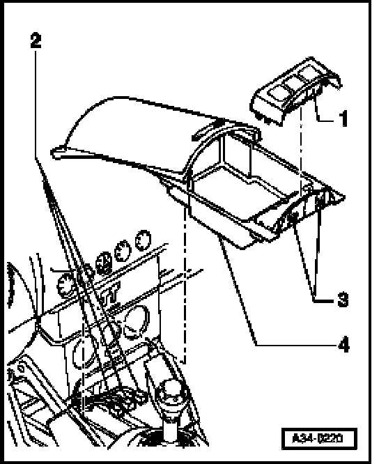 - Lift out switch console -1- together with connectors -2- from opening -3- in insert -4-.