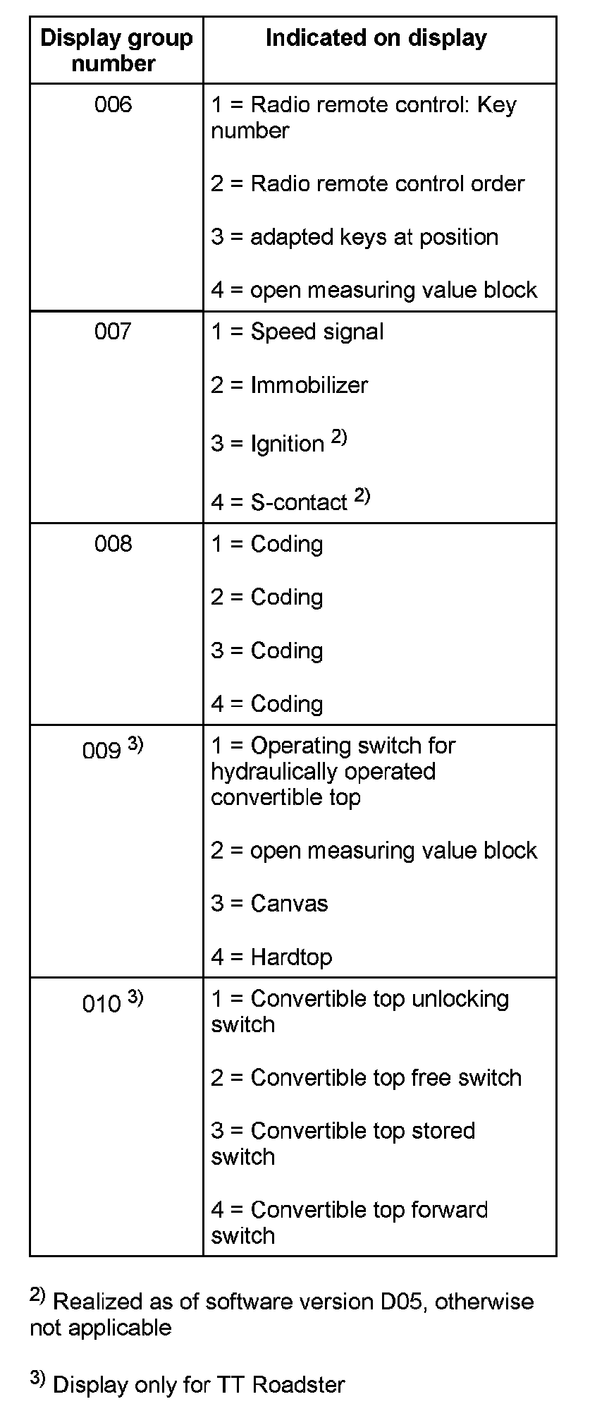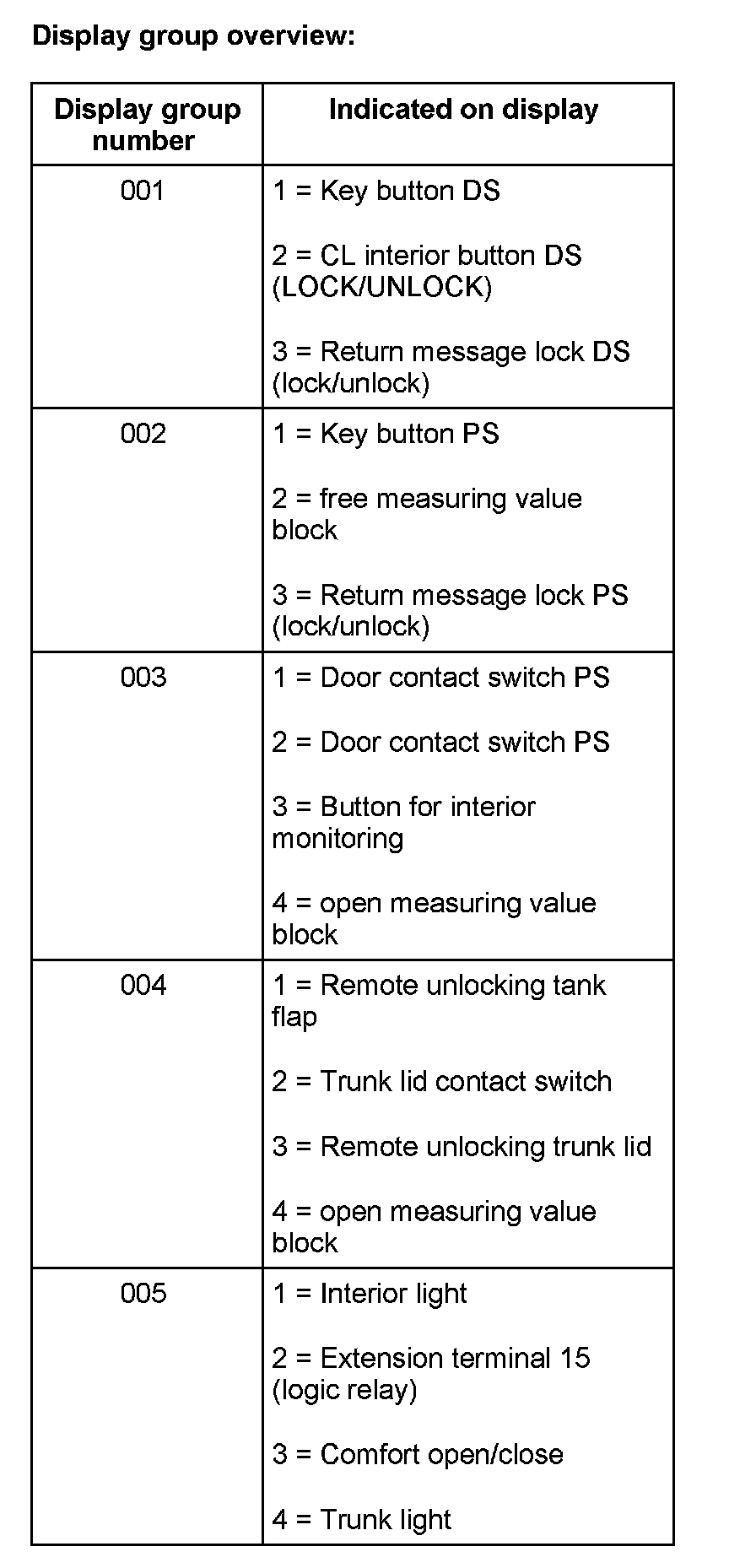 NOTE: The function "Read measuring value block" can be used to determine the current system status.