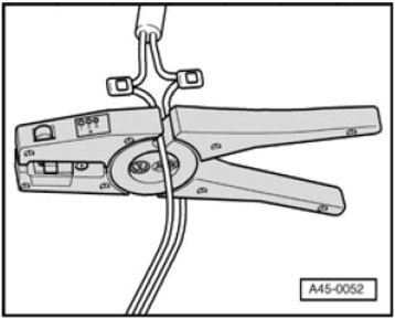 - Disconnect the wheel speed sensor wire in front of the welding connection using wire stripper from VAS1978 and remove faulty piece of wiring.