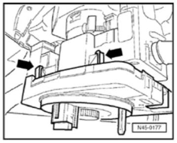 - Carefully lift lower retainer tabs and pull off housing with coil connector, slip ring and steering angle sensor from steering column switch.