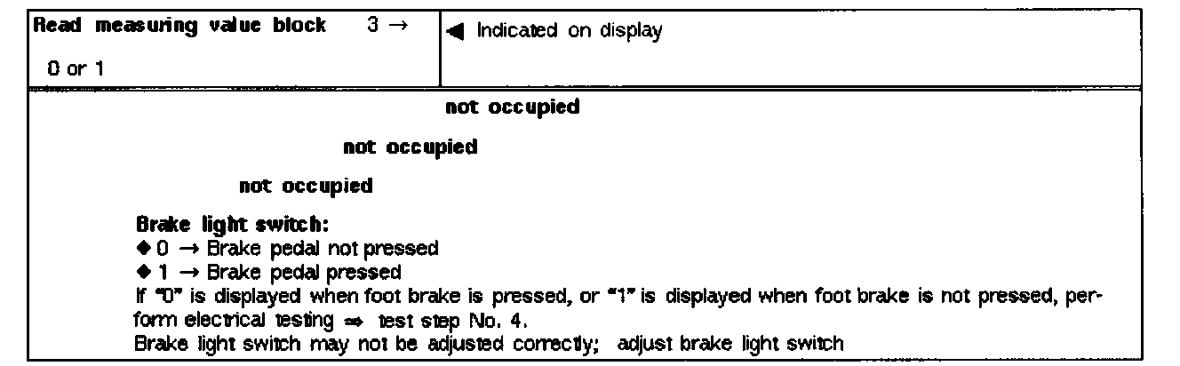 If a malfunction occurs in the system while "Check DTC memory" or "Read measuring value block" are being performed, it will be recognized by the control module and indicated by the ABS warning light - K47. This is an aid for tracing sporadic malfunctions.