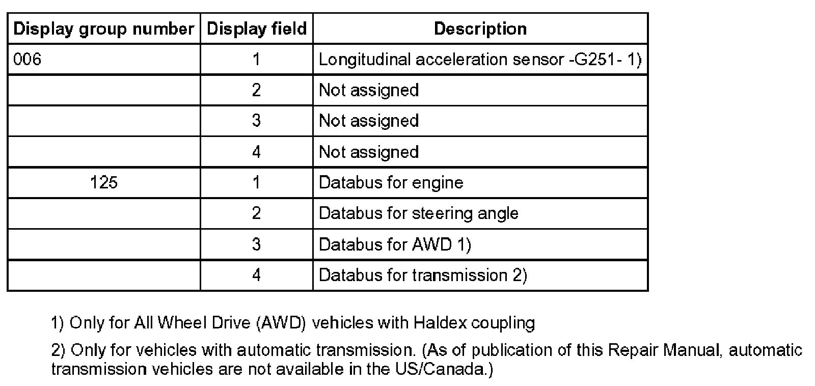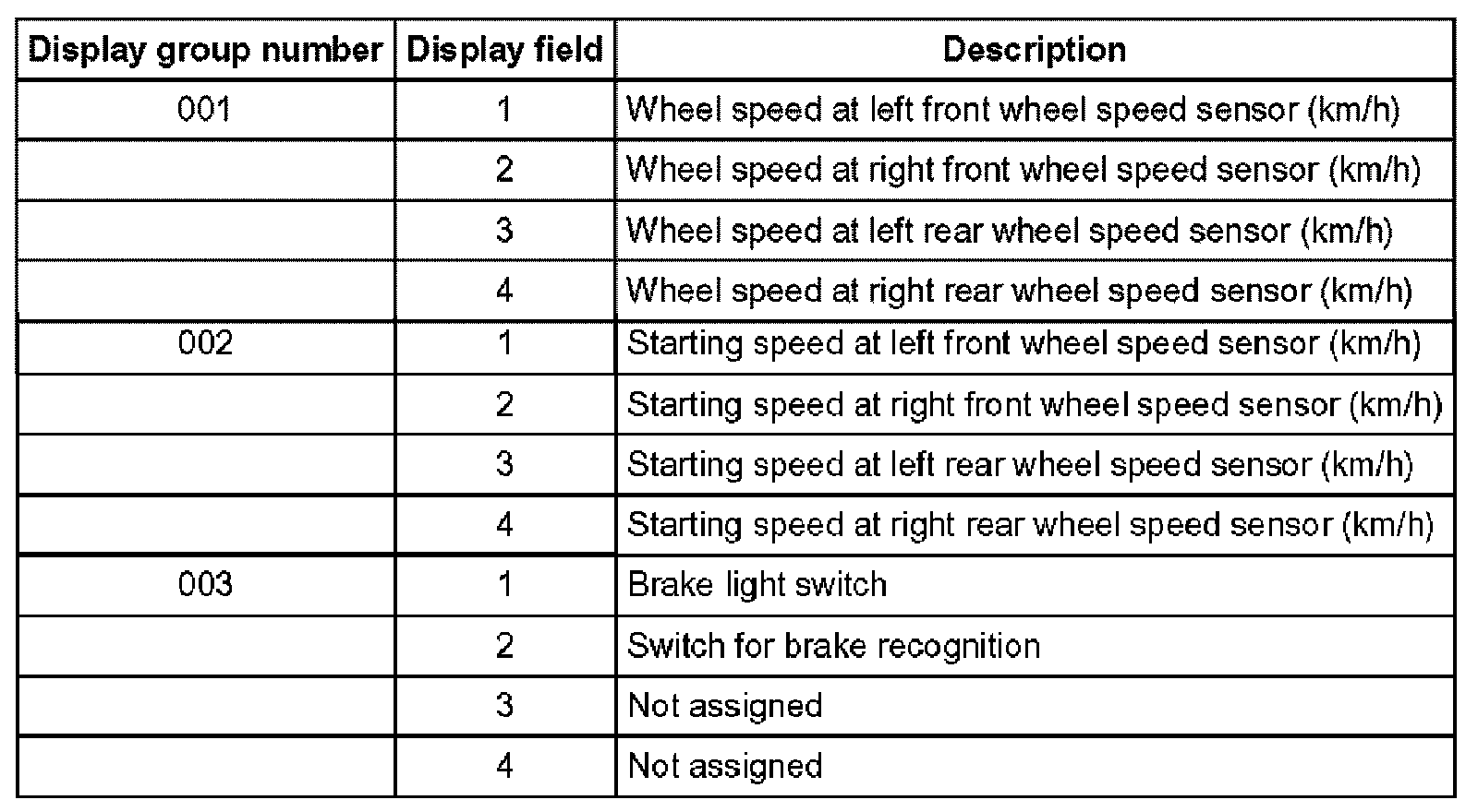 The control module can transmit numerous measured values. These measured values provide information about the operational status of the system and the sensors connected to it. In many cases the data supplied can be used to troubleshoot and repair malfunctions. Because these measured values cannot all be transmitted simultaneously, they are organized into individual display groups that can be selected via display group numbers.
