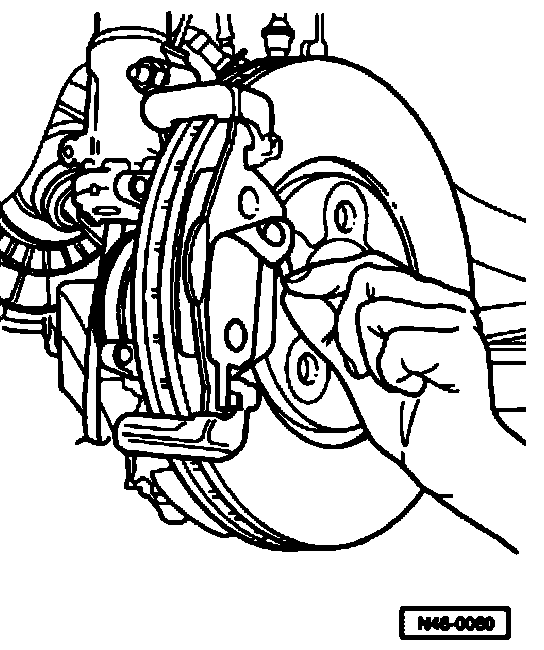 ^ Take brake pads out of brake caliper housing or from brake carrier.