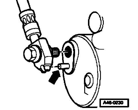 ^ Make sure that the groove in the ring connection on the brake hose is installed in the locating lug (arrow).