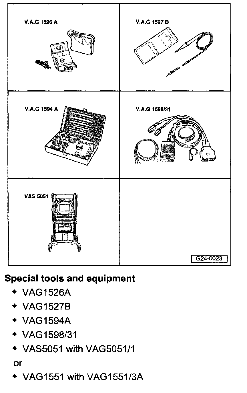 - Connect VAG 1598/31 test box at wiring harness to ECM, do not connect ECM.