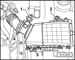 - Remove bolts -2- and -3-, then remove air cleaner housing.