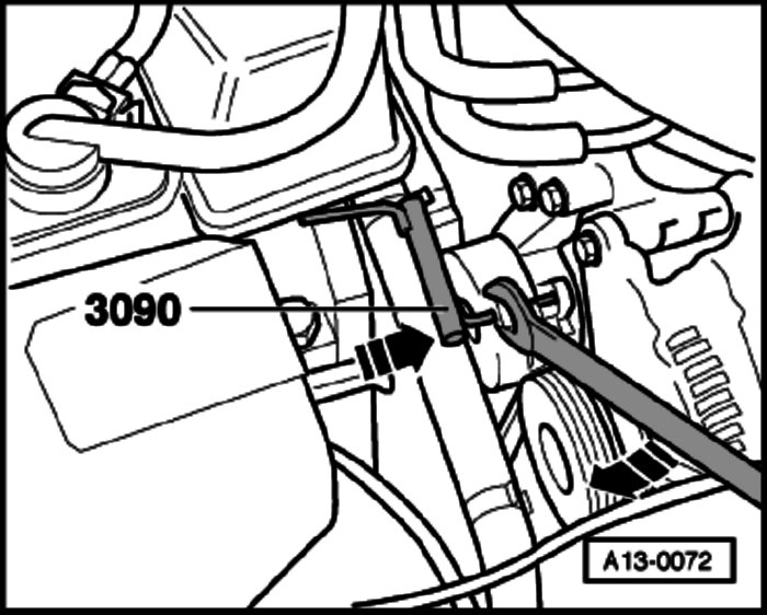 - Slacken ribbed belt by turning tensioning element in direction indicated (arrow).