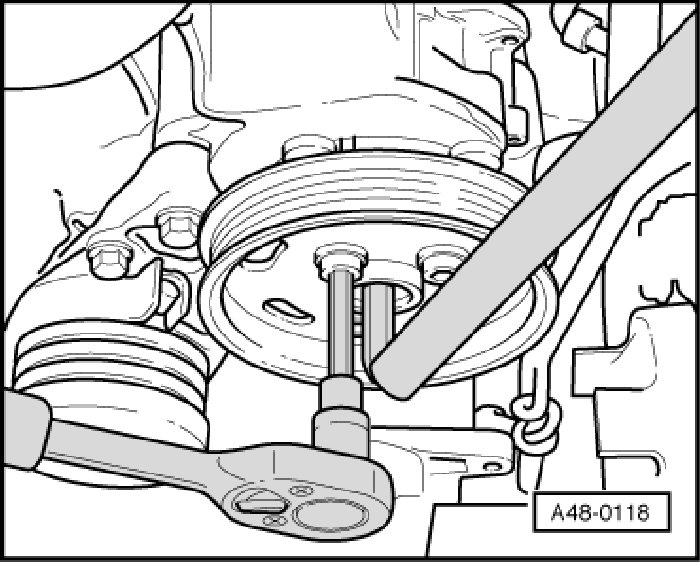 - Unbolt pump pulley (brace pulley with hexagon socket wrench).