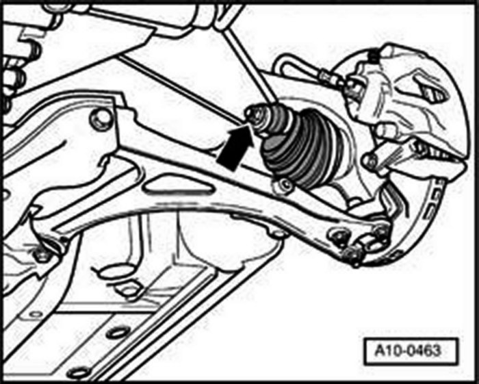 - Unbolt engine/transmission mount on the engine side. (Use step ladder VAS 5085 for access to engine compartment from above.)