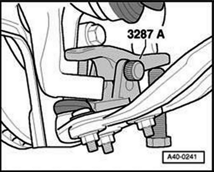 - Install engine/transmission jack V.A.G. 1383A to engine bracket and raise engine/transmission slightly.