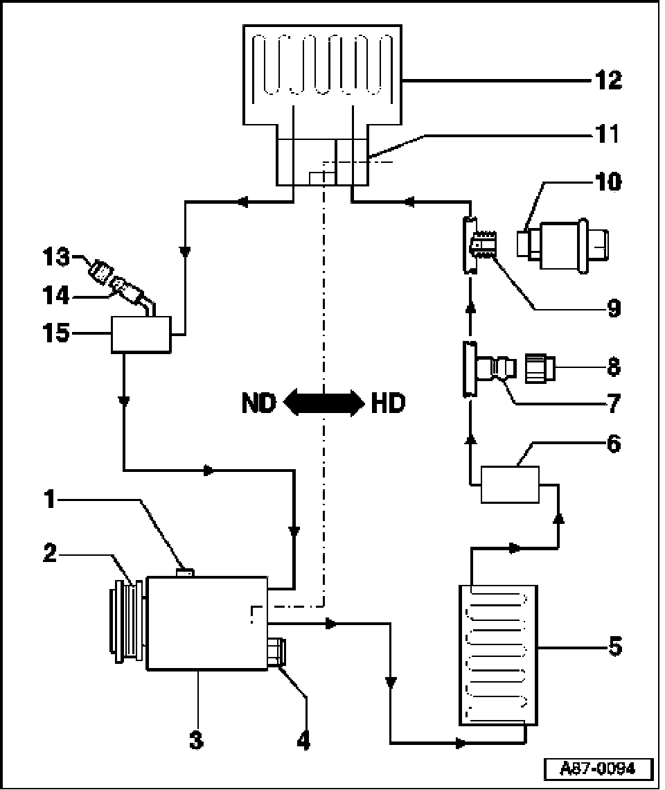 10 A/C pressure switch -F129- or high pressure sensor -G65-