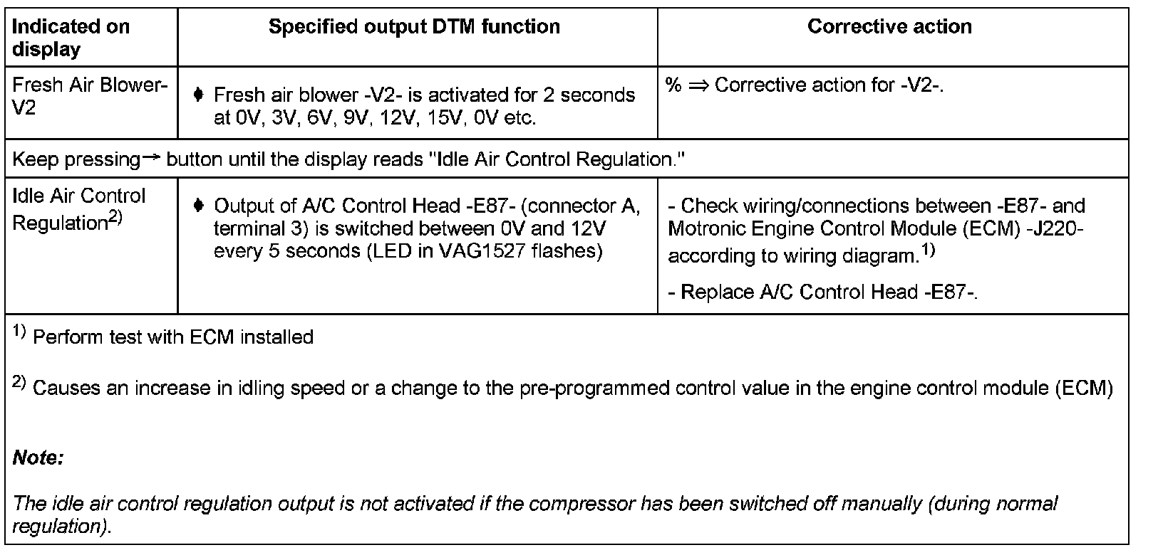 NOTE: If the function "Output Diagnostic Test Mode" is once again entered, the A/C clutch -N25- is no longer actuated, Read Measuring Value Block (Display Group 001).