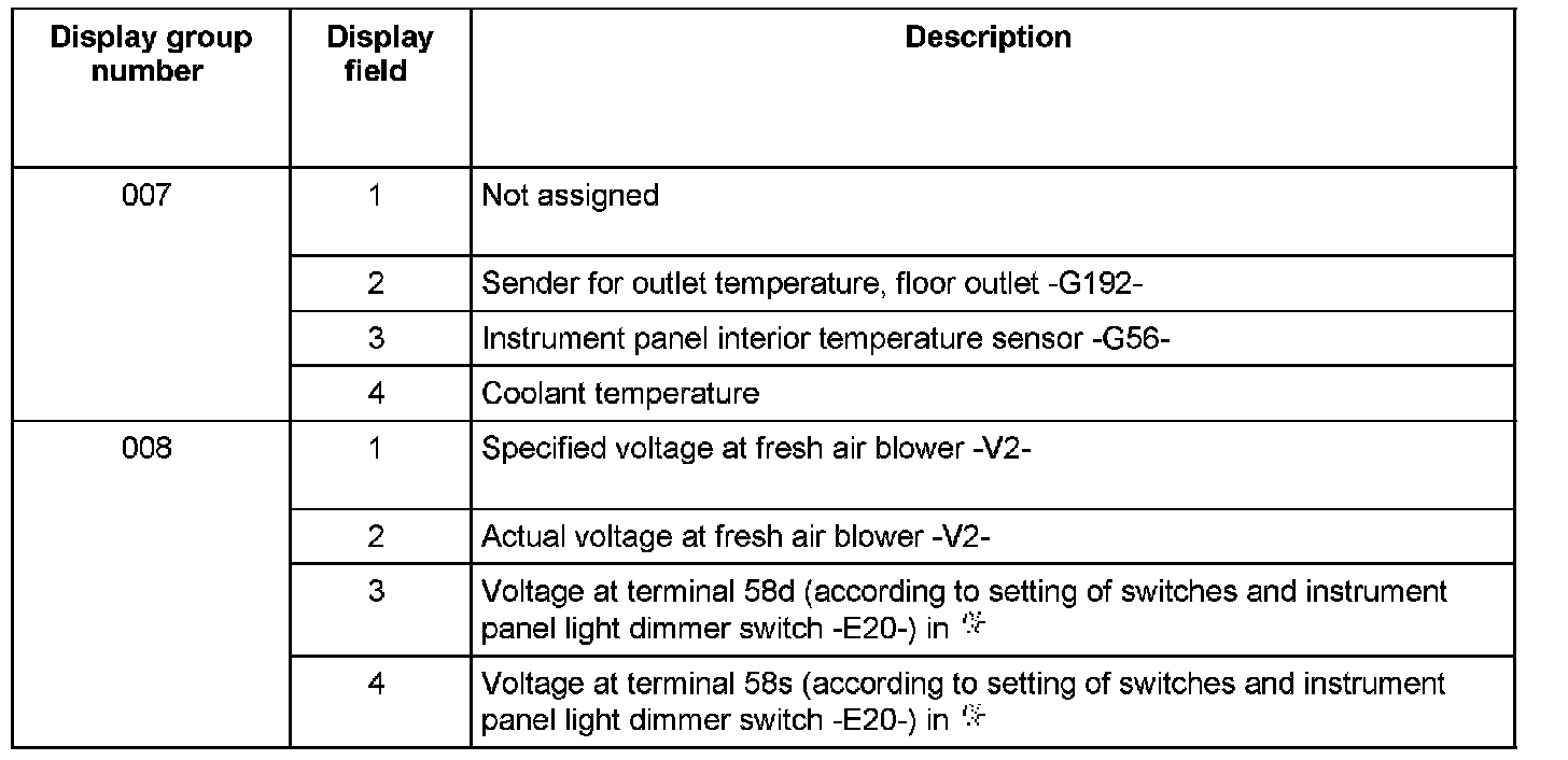 - Regulation of the air conditioning remains functional during the On Board Diagnostic (OBD) Read Measuring Value Block" function 08 and the current measured values are displayed.