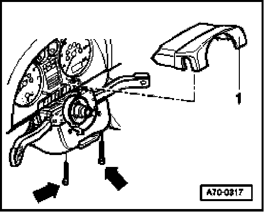 - Remove upper section of steering column switch trim -1-.