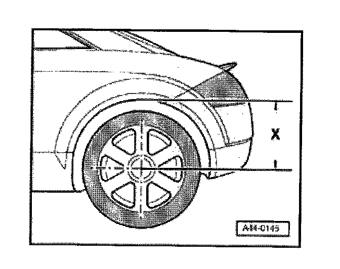 Determine vehicle standing height "X" between wheel center and wheel housing lower edge of chassis before vehicle alignment.