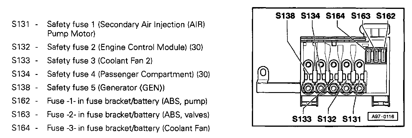 Fuse Arrangement in Main Fuse Box (Fuse Bracket on Battery)