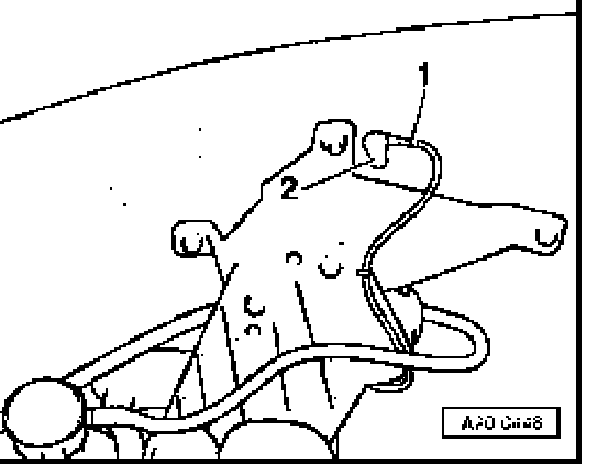 ^ Tighten eyelet of electrical wire -1- at chassis using cap nut -2- (10 Nm).