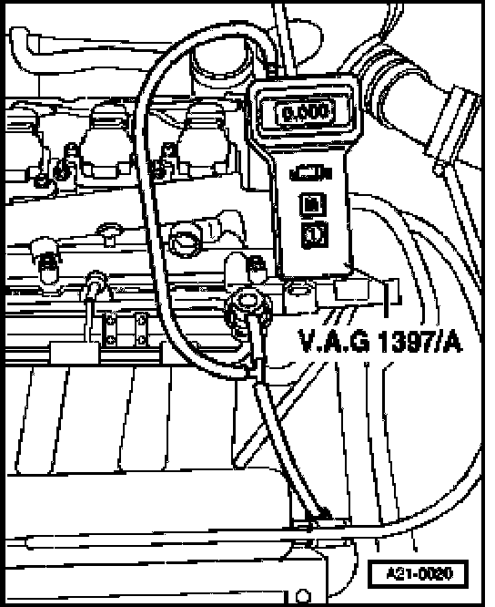 - Using VAG1397A Turbocharger Tester test hose, connect T-piece to front of intake manifold.