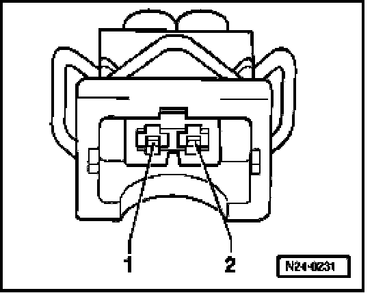 - Disconnect 2-pin connector -1- from Evaporative Emission (EVAP) Canister Purge Regulator Valve -N80- (-2-).