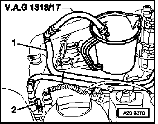- Connect adapter (VAG1318/17) to engine fuel return line and hold in a measuring container.