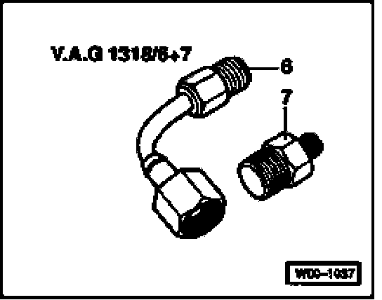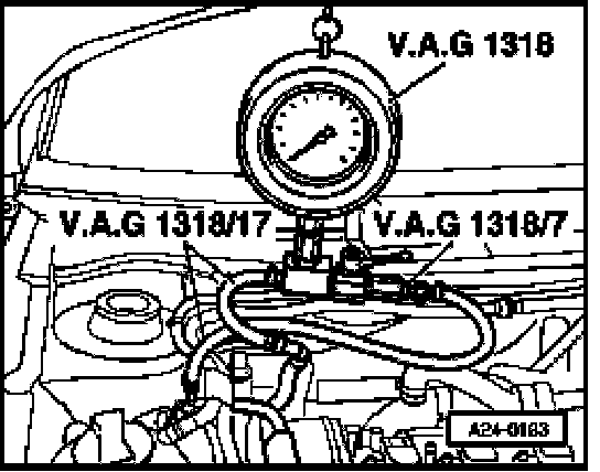 - Connect VAG1318 using adapters 1318/7 and 1318/17 (2 pieces) at supply line.
